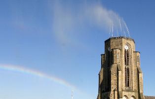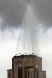 Buer gets the top of its church spire back: Anyone in the centre of Buer who buys a lottery ticket from an unemployed person - hired by the artists for this project - and wins, is given the chance, as prize winner, of activating a huge water fountain which briefly takes the form of the tip of the spire of St Urbanus church which was destroyed during the war. Water in the context of the church is a reference to ancient religious rituals (cleansing, baptism....) and the cultural significance of water in our society.